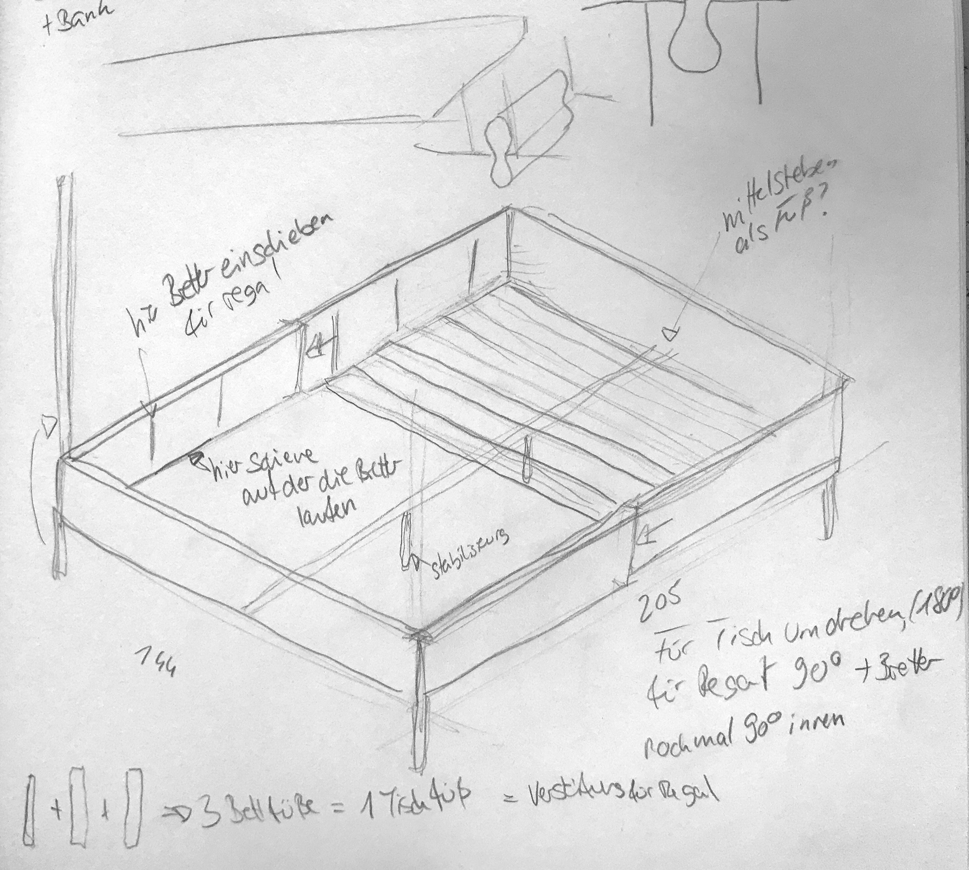 In dem Entwurfskurs Circular Economy bei Prof. Tom Philipps haben wir die Aufgabe bekommen ein nachhaltiges Produkt zu entwerfen. Während meines Studiums bin ich 3 mal umgezogen und jedesmal habe ich mir überlegt, welche Möbel ich mitnehme und welche ich meinem Nachmieter oder meiner Nachmieterin überlasse. Diese Entscheidung wurde zum Einen durch die schon vorhanden Möbel in meiner neuen WG bestimmt und zum Anderen davon wie viel Zeit und Platz ich hatte meine alten Möbel zu transportieren bzw. auf und wieder abzubauen. So entstand die Idee zu BABERETI aus diesen Situationen heraus.